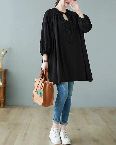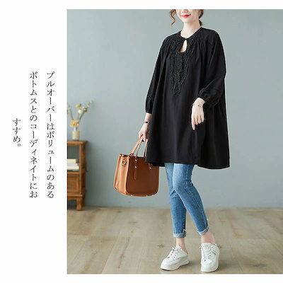 チュニック ブラウス 春 夏 トップス 7分袖 シャツ リネン 白シャツ 刺繍 花柄 シャツブラウス レディース tシャツ 切り替え パフ袖 ブラウス 黒 ロング 長袖 大きいサイズ ゆったり おしゃ | koookooo