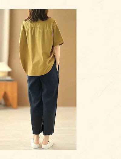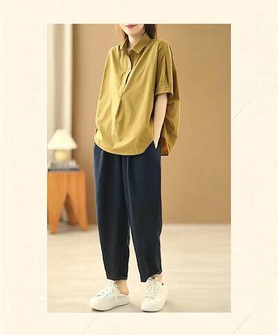 シャツ レディース シャツブラウス vネック 五分袖 ブラウス トップス ブラウスチュニック 無地 5分袖 春 夏 キレイめ ゆったり カジュアル 大人可愛い オシャレ 体型カバー シンプル フォーマ | koookooo