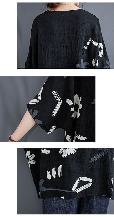 Tシャツ レディース 半袖 夏 大きいサイズ ゆったり 体型カバー 花柄 ブラウス チュニック カットソー 半袖 春 トップス ティーシャツ クルーネック フリーサイズ プルオーバー ゆったり 体 | koookooo