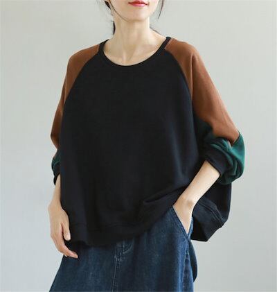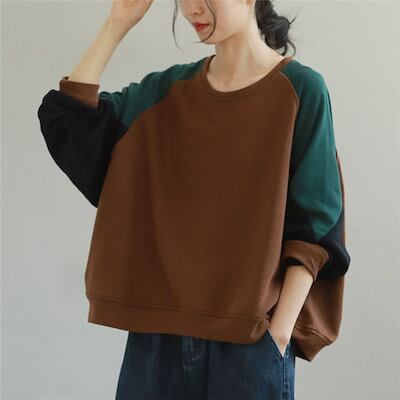 スウェット レディース トレーナー レディース 春 秋 おしゃれ プルオーバー 配色 トップス パーカー 長袖 リラックス 着回し 定番 シンプル 切り替え 大きいサイズ 春 体型カバー ゆったり 春 | koookooo