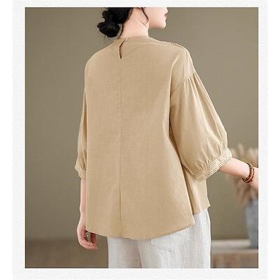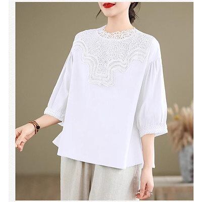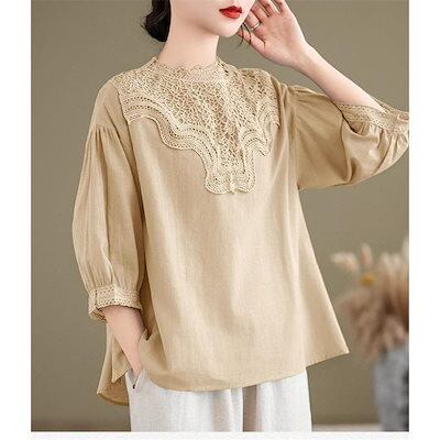 ブラウス レディース トップス 春夏 シャツ 半袖 ハイネック レース 大きいサイズ 今年らしく シンプルで上品 体型カバー ゆったり タックスリーブ 無地