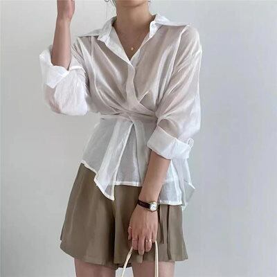 春トップス ブラウス シャツ レディース 長袖 パフスリーブ 体型カバー ゆったりと薄手 その日の気分で着回しパターン 自由自在 ボリュームスリーブ