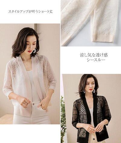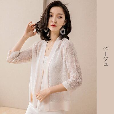 透かし編み カーディガン 夏 カーディガン 薄手 UV カーディガン レディース 春夏 ショート丈 7分袖 薄手 羽織り はおり 透かし 透け感 ノーボタン ナチュラル トップス ゆったり 体型カバー | koookooo