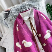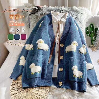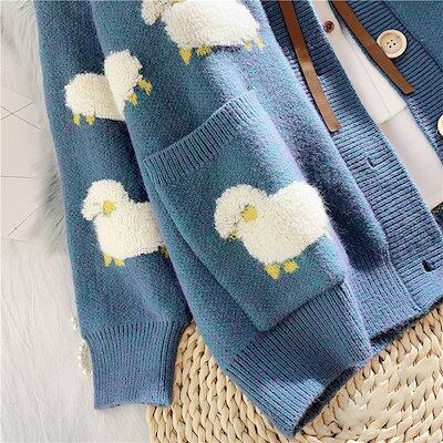 カーディガン レディース 秋冬 春 ゆったり 可愛い ニット カーディガン レディース 秋 長袖 ニットカーディガン 厚手 羊柄 かわいい ニット カーディガン トップス ニット ジャケット 重ね着 | koookooo
