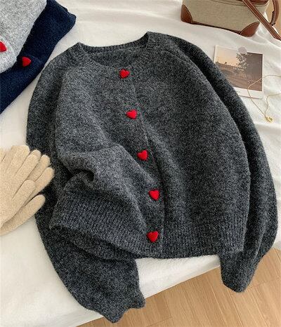 ニットカーディガン レディース 春 秋 冬 ニット カーディガン 秋冬 ライトコート トップス もこもこ ニット 柔らかい シンプル クルーネック ハートボタン 重ね着 羽織り 大きいサイズ ゆったり | koookooo