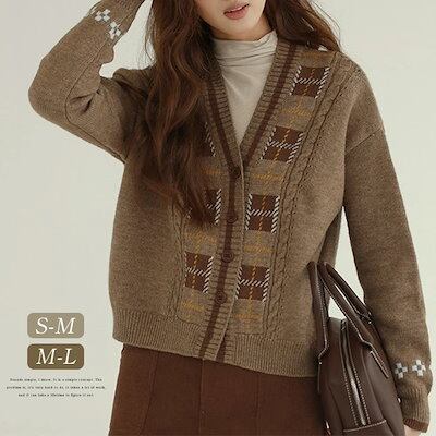 Vネック カーディガン レディース 秋冬 総柄 配色 春 ゆったり カジュアル おしゃれ 厚手 秋 長袖 セーター ニットカーディガン ニット カーディガン トップス ニット シャツブラウス ジャケッ | koookooo
