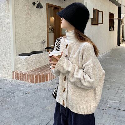 カーディガン レディース 秋冬 無地 春 ゆったり カジュアル おしゃれ 秋 長袖 韓国風 セーター ニットカーディガン ニット カーディガン トップス ニット シャツブラウス ジャケット 体型カバー | koookooo