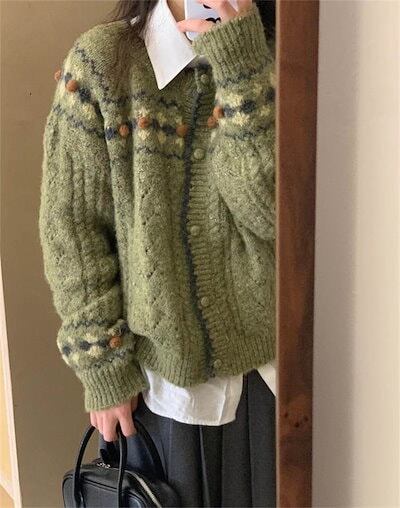 総柄 カーディガン レディース 秋冬 配色 春 ゆったり カジュアル おしゃれ 厚手 秋 長袖 セーター ニットカーディガン ニット カーディガン トップス ニット シャツブラウス ジャケット ファシ | koookooo