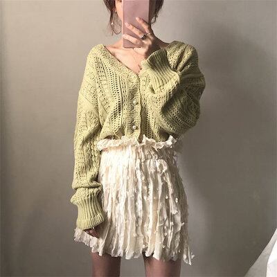 ニット カーディガン レディース 秋冬 秋 冬 透かし編み 長袖 vネック 無地 春 ゆったり カジュアル おしゃれ 秋 長袖 セーター ニットカーディガン ニット トップス ニット シャツブラウス | koookooo
