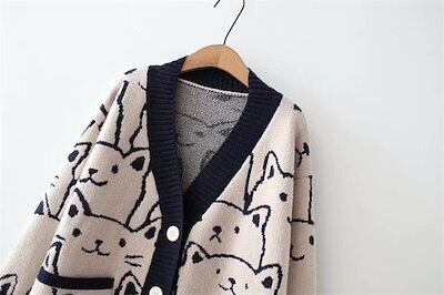 カーディガン レディース 春 秋 ゆったり 可愛い ニット カーディガン レディース 秋 長袖 ニットカーディガン 厚手 猫柄 ニット カーディガン ライトコート トップス ニット ジャケット 重ね着 | koookooo