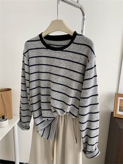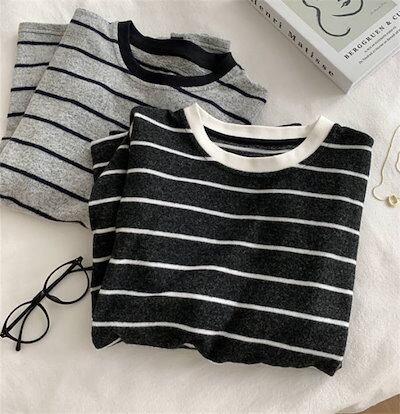 微起毛 tシャツ レディース あったか 秋冬 長袖tシャツ カットソー プルオーバー クールネック 重ね着 Tシャツ ストライプ 長袖 暖かい シンプル ゆったり 体型カバー 春 冬 秋 着回し 定番 | koookooo