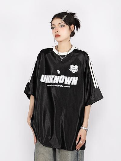 2024夏 韓国可愛い風トップス Tシャツ ファッション 半袖 スリムフィット サイド ペイントシルエット ゆったり丈 休日レディースサイズ韓国Vネック おしゃれ カジュアル メンズライク T | koookooo