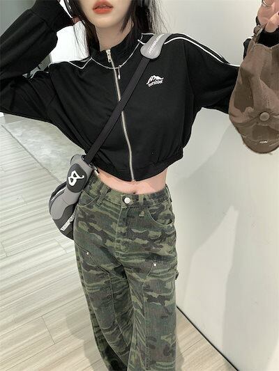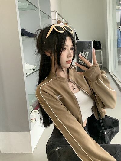 2024 秋 韓国 かわいい レディース アウター ブルゾン お出かけ ブラック ライトカーキ アウター長袖セクシートップスサイド冬カジュアルファッション系お出かけフル丈トラック2 | koookooo