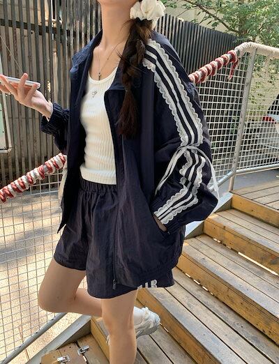 2024 秋 上下2点セット トップス お出かけ 羽織り ショート丈フルラウンドヘム ミニ丈ボトムスサイズストレート系冬 ゆったりレディースハーフスタイルアップシルエットワイドお出かけトラック | koookooo