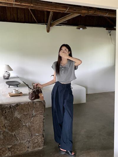 2024夏トップス ポロシャツ 半袖 丈短め 細見え 夏 おしゃれ かわいい 韓国ファッション レディース お出かけ