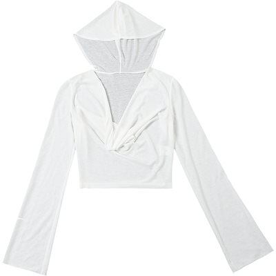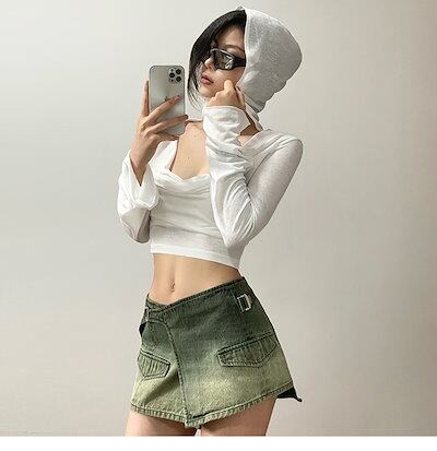 2024 春夏 フード付き tシャツ ファッション トップス 薄手 韓国系 長袖 秋 白 ソリッドカラー シャツスリムトップパイル襟日焼け止めシャツ肌見せ 女っぽ フレンチタイト丈 レディース T | koookooo