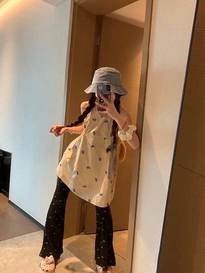 2024夏 韓国トップス シャツ ラウンドネック リボン ノースリーブ ゆったり 細見え 夏 白 ホワイト おしゃれ かわいい キュート ガーリー 甘め 韓国ファッション レディース お出かけ | koookooo