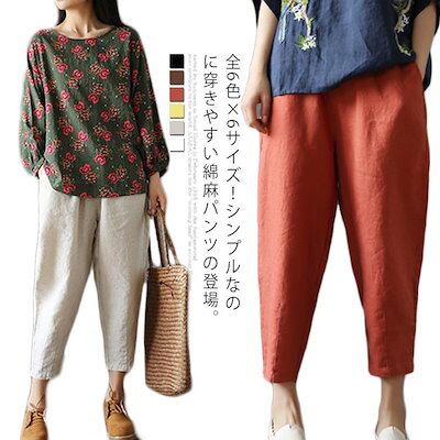 綿麻カジュアルパンツ レディース サルエルパンツ クロップドパンツ アンクルパンツ サルエル カジュアルパンツ 綿麻 ゆったり 体型