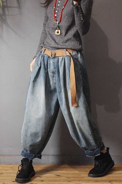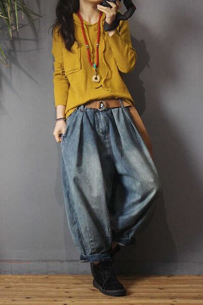 サルエルパンツ レディース デニム ボトムス ロング パンツ デニムパンツ ロングパンツ ワイドパンツ ガウチョパンツ コクーンデニム サーカスパンツ パッチワーク ウエストゴム アンクル丈 お洒落 | koookooo