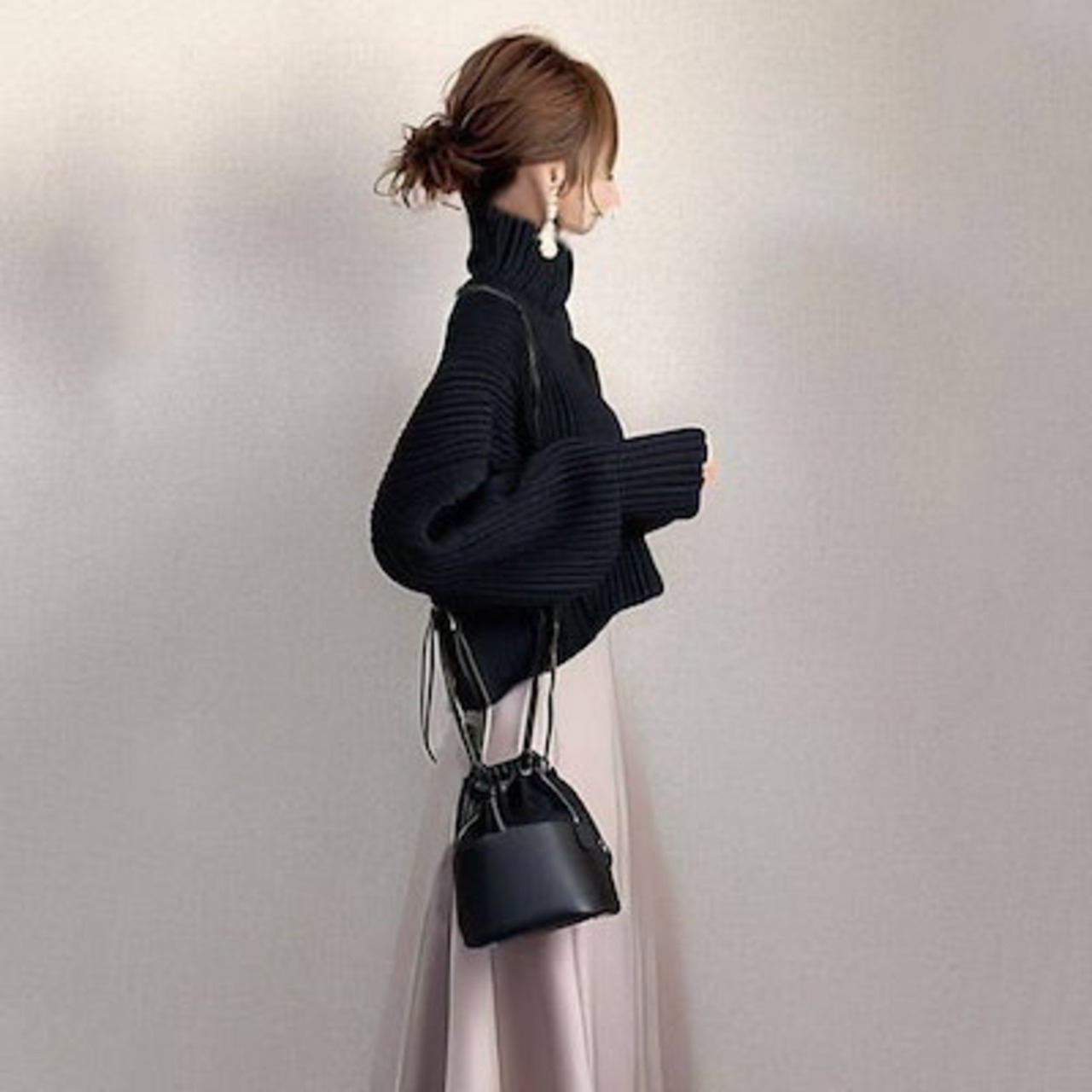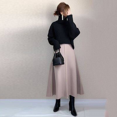 【超人気好評 急速出荷】2025初春新品 日系 レディース ハイネック ニット セーター+ラシャ スカート体型カバー トップス 大きめサイズ メガ割 2025福袋