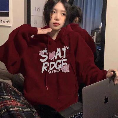 ワインレッドのガーディアン韓国 パーカー 2025春冬の新型帽子までゆったりした個性的なコートにベルベットをつけて学生の外着を厚くする