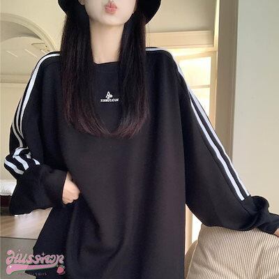2024 秋冬 トップス セーター 長袖 かわいいラウンドネック T シャツ レディース 韓国 ルーズ ゆったり 無地 カジュアルスリーブおしゃれサイズ シルエットサイドファッション系スリーお出かけ春 | koookooo