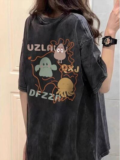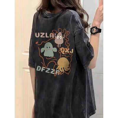 2024 春夏 可愛いトップス Tシャツ ラウンドネック ゆったり シルエット 丈長め 夏 赤 白 かわいい カジュアルサイズ加工風 韓国系ファッション レディース お出かけT