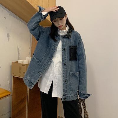 コーデに役立つ!デニムジャケット レディース パステルカラーのゆったりデニムコート春と秋の新作レトロな長袖ジャケットジャケットコートブーム 韓国ファッション