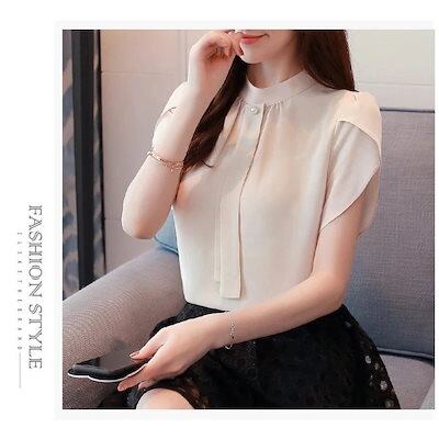 今っぽシアーシャツ 通勤 ブラウス レディース 40代 春夏新作 オシャレブラウス 白シフォンシャツ 半袖トップス フレア袖ブラウス 大人上品 通勤 ゆったり シャツ 韓国風 30代 50代 レディ | koookooo