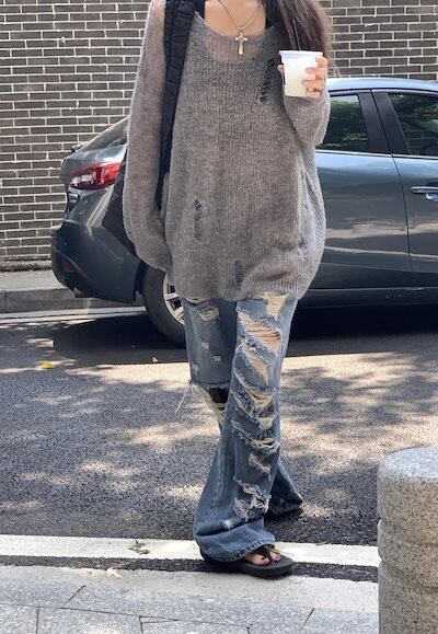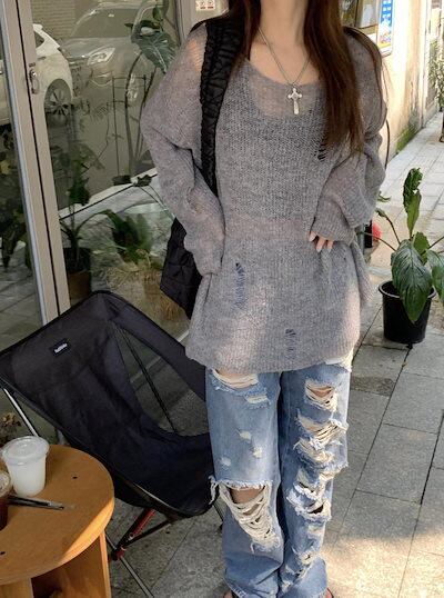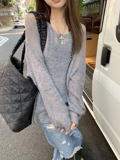 ファーウェイ 2024春夏 長袖 ニット プルトップスストリートカジュアエコルシルエットクルーネック加工色っぽ 女っぽ カジュアル 大人っぽ 上品 サイズフェミニンゆったりカジュアル レディースゆったり秋冬春 | koookooo