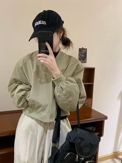ファーウェイ 春アウター ジャケット ゆったりとしたショート丈のハンサムな野球服の新しいラウンドネックコートレディース 韓国ファッション