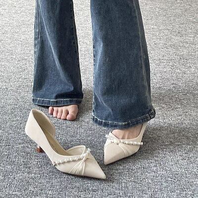 春夏 人気 靴 韓国ファッション 2024新作 レディース ファッション 百掛け 走れるパンプス パール ピンヒール ポインテッドトゥ ハイヒール サンダル 快適 痛くない 通勤 靴 | koookooo