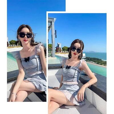 (addical)2つ買うと200円引きビキニ水着 レディース フリル 可愛い 水着 韓国 2点セット体型カバー 韓国 小胸 バンドゥ ビギニ 胸パッド付き セパレート スイムウェア 温泉 代 30代 | koookooo
