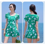 水着 レディース 花柄 セパレート 水着 ワンピース ショートパンツ 中学生 高校生 韓国 水着 フリル ハイウエスト uネック 体型カバー 露出控えめ 可愛い 水着