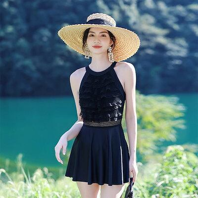 水着 レディース 上下セット 黒 白 無地 体型カバー 可愛い フリル 小胸 水着 韓国 水着 スカート タンキニ 水着 タンキニ 露出控えめ 可愛い水着 安全パンツ 30代 20代 40代 50 | koookooo