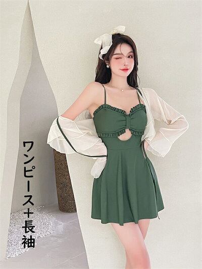 水着 ワンピース 長袖 2点セット レディース オールインワン 体型カバー水着 女の子 2color ママ水着 ぽっちゃり オトナ女子 エレガント フリル 可愛い お洒落 お腹 お尻 太もも 楽天海外 | koookooo