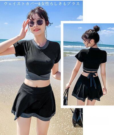 【即納】!水着 韓国 高校生 セパレート 体型カバー 水着 上下セット 水着 レディース 水着レギンス 半袖 へそ出し フリル 女の子 水着 中学生 大きいサイズ オシャレ 可愛い セクシー バスト | koookooo