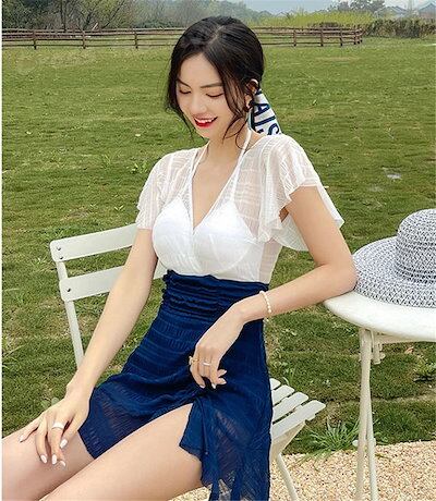 【即納】水着 レディース 高校生 韓国 ラッシュガード 体型カバー 水着 レギンス 水着 女の子 カバーアップ 水着 フリル レース 網 ママ ワンピース 水着 20代 30代 40代 大きいサイズ | koookooo