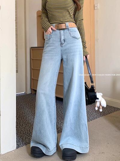 2025春夏 デニムパンツ ボトムス ハイウエストモップジーンズ K-POP ストリートファッション系モップ韓国風ファッション練習ジーンズ シルエット加工ゆったりレッグレディースカジュアル型サイズ衣装 | koookooo