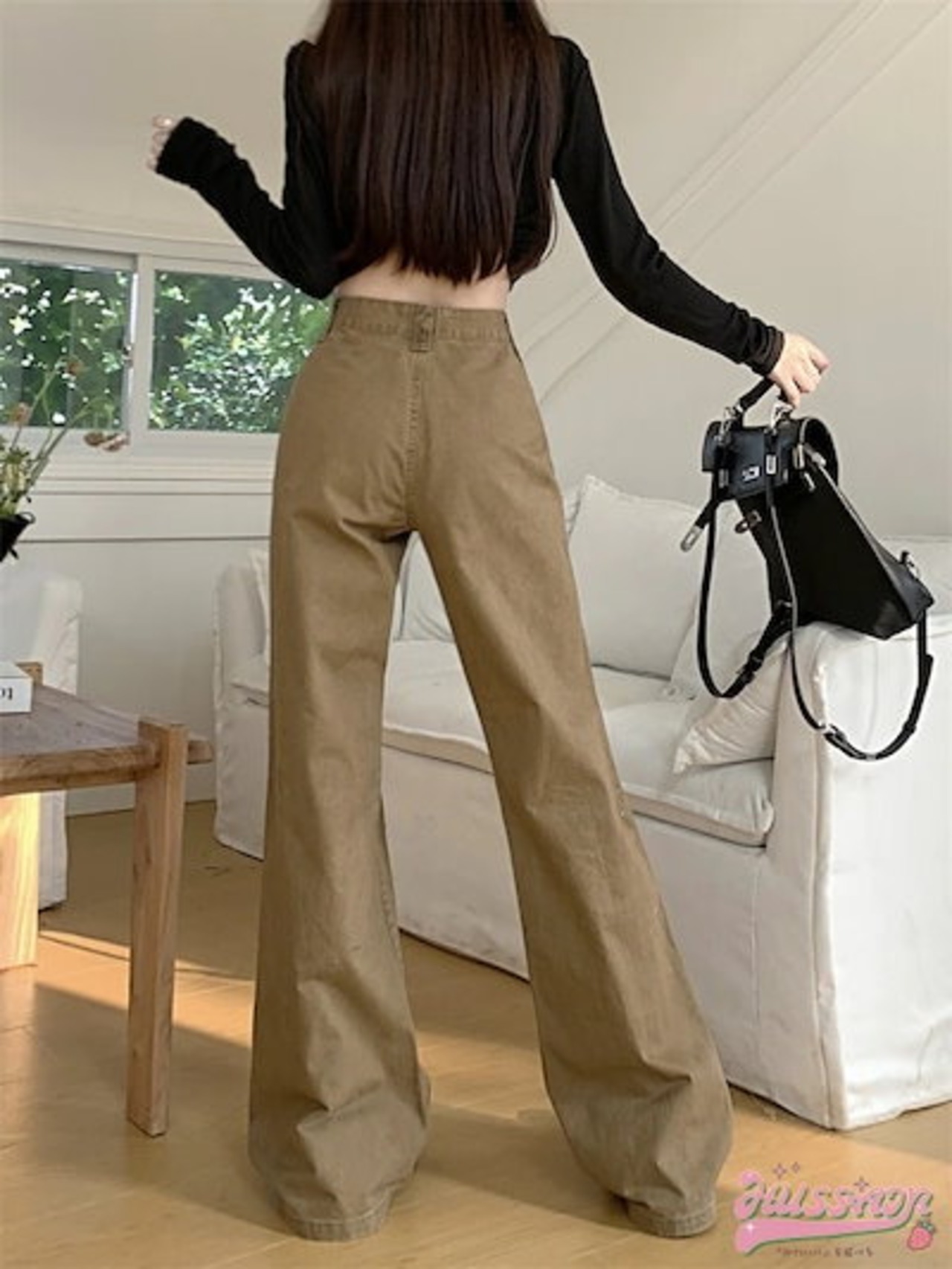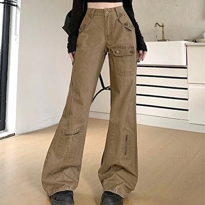 パンツ デニム ジーンズ ワイドレッグ ワイド ハイウエスト 脚長効果 美脚効果 細見え 春 茶色 ブラウン カジュアル 韓国ファッション レディース お出かけ