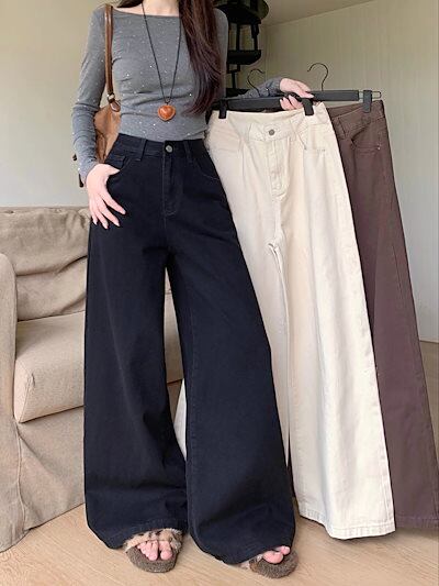 2025春夏 デニムパンツ ボトムス ハイウエスト ジーンズ K-POP ストリート系ファッション系モップ韓国風ファッションウェア練習ジーンズ シルエット加工ゆったりレッグレディースカジュアル型衣装 | koookooo