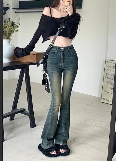 2025春夏 ボトムス パンツ デニム ロングファッションワイドレッグ レディース レトロズボン韓国 ハイウエスト 足長効果 薄手 おしゃれ お出かけ 細見え