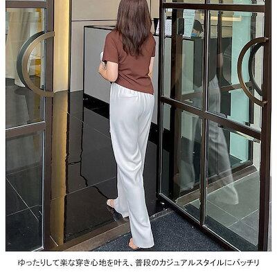ワイドパンツ 春 夏 秋 レディース ロングパンツ ハイウエスト ガウチョパンツ ストレート フェイクポケット ボタン パンツ ズボン ボトムス スタイルアップ