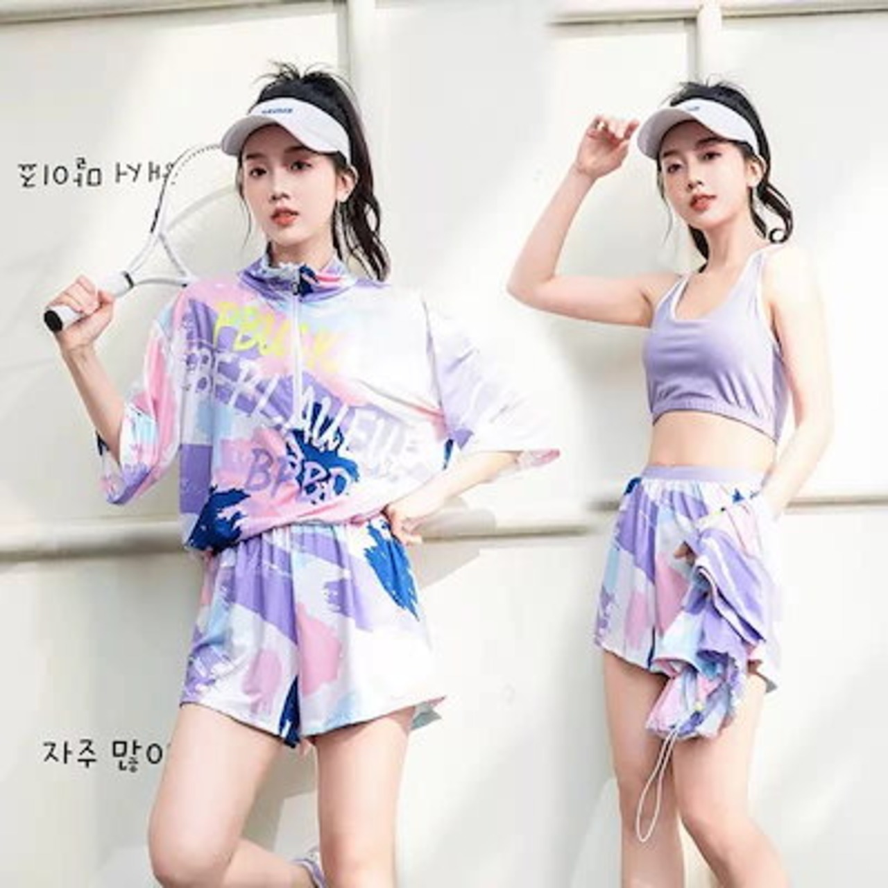 2025新品 水着 レディース水着 3点セット ラッシュガード UVカットパッド付 2カラー 体型カバー 水着002 女の子 水着 レディース 可愛い 大きいサイズ 大人用 水着 体型カバー ラッシュ | koookooo
