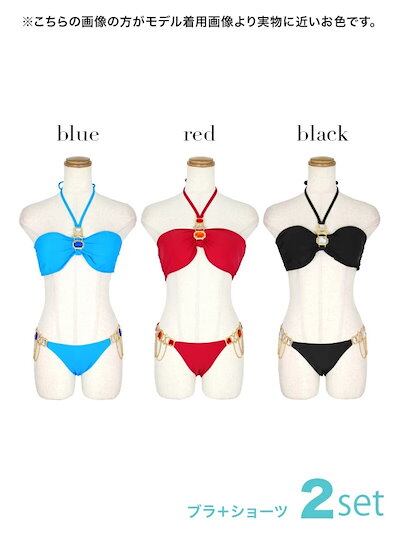 水着 ビキニ セット ビキニ水着 バンドゥ ビジュー ホルターネック セットアップ セクシー ブラック ブルー ピンク イエロー レディースビキニ 激安 体型カバーレディース 高校生 レディース水着 | koookooo
