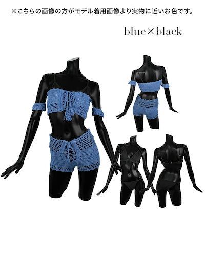 水着 ビキニ セット ビキニ水着 クロシェ 編み オフショル ショートパンツ インナービキ二 4点セット ベージュ 青 大きいサイズ セクシー 激安 体型カバー 可愛い レディース 高校生 レディース | koookooo