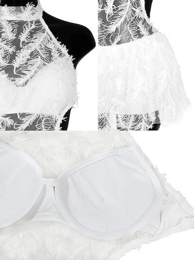 水着 ハイネック シースルー フェザー モノキニ ワンピース セクシー ホワイト ブラック ビキニ セット 大きいサイズ バンドゥ レディースビキニ 黒 白 激安 体型カバー 可愛い レディース 高校 | koookooo