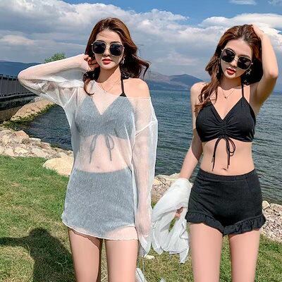【メガ割 】即納 急速出荷品質保証3点セット 露出控えめ 水着 レディース 体型カバー ビキニ セパレート フィットネス タンキニ 大きいサイズ セットアップ 韓国 かわいい セクシー スポーツ おし | koookooo