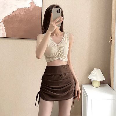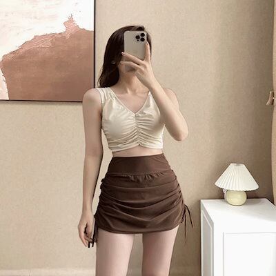 水着 ビキニ レディース スカパン パッド付き セット ツーピース 上下セット かわいい 大人可愛い きれいめ シンプル カジュアル ナチュラル 大人っぽい おしゃれ お洒落 主役級 存在感 キュート | koookooo