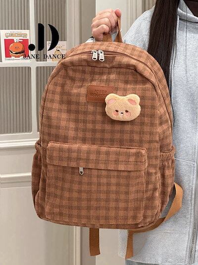 キャンパスレトロチェック柄ショルダーバッグ 百式バックパックリュック リュック 大容量 リュックサック 大容量 リュック リュック レディース 韓国 リュック 旅行バッグ メカ割 | koookooo